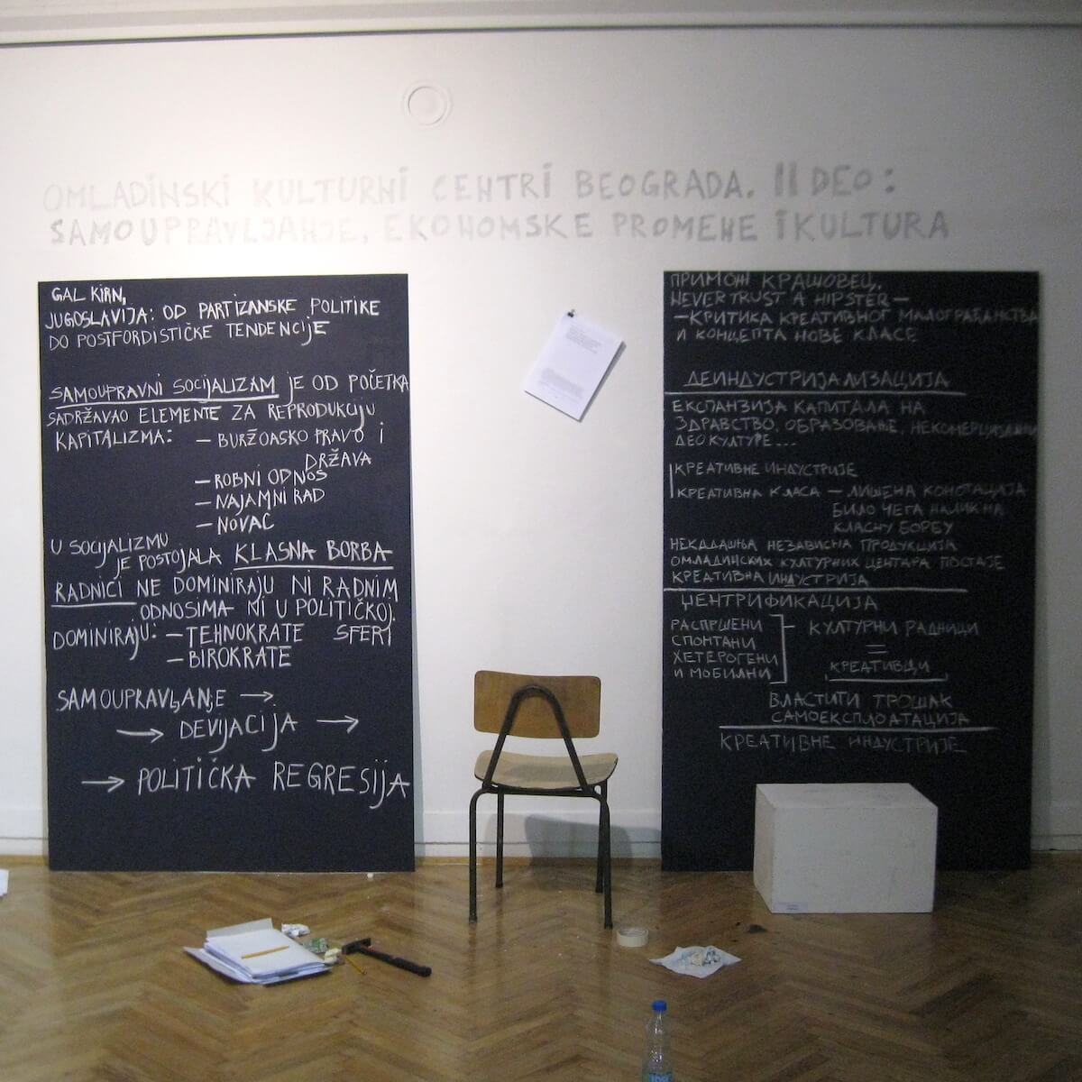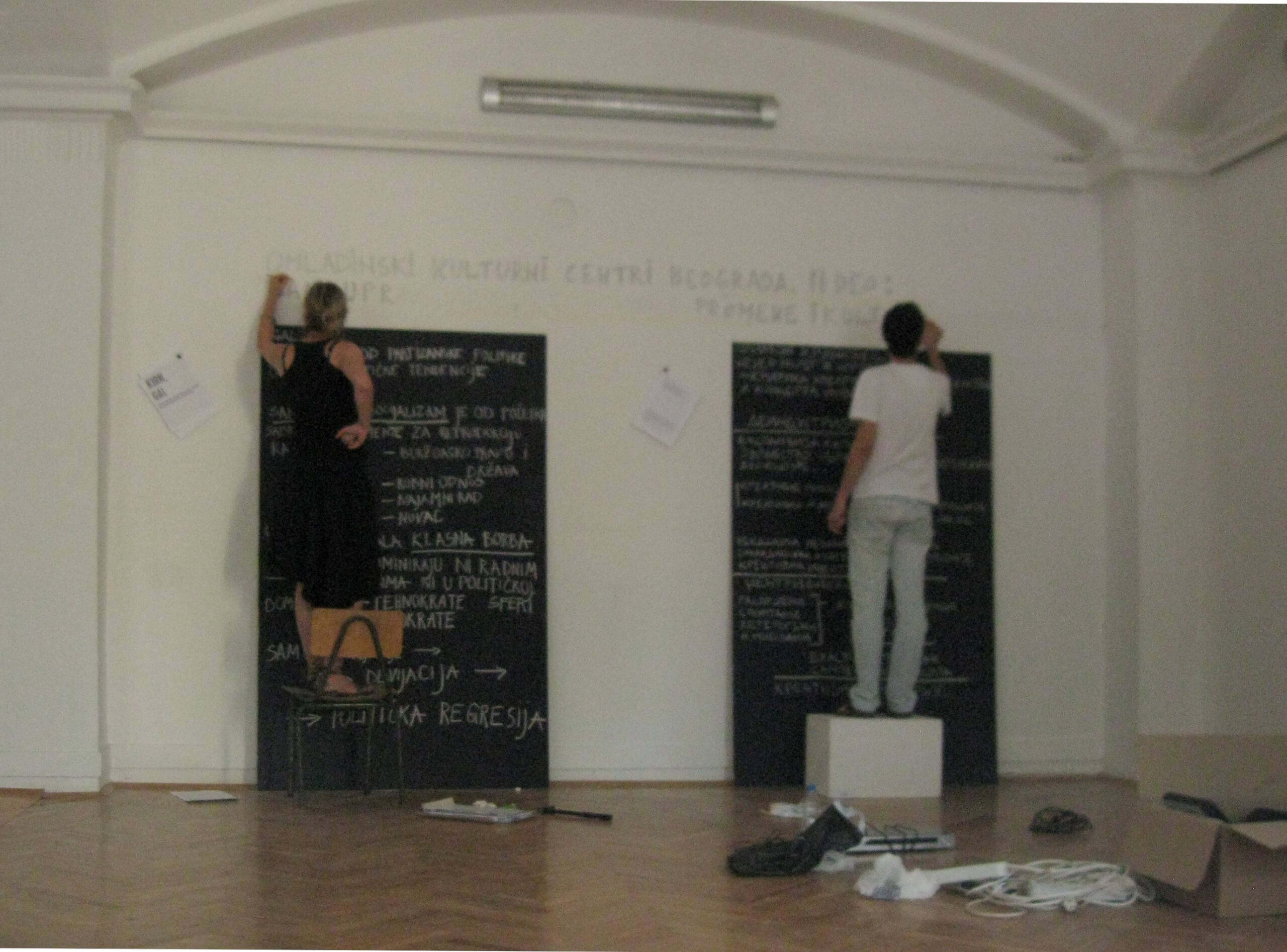 The key theses of these two texts in the form of writing on blackboards were an integral part of the exhibition within the 15th Biennale of Art in Pančevo.