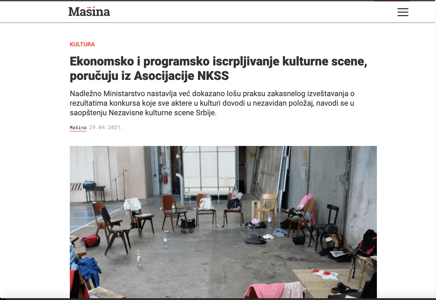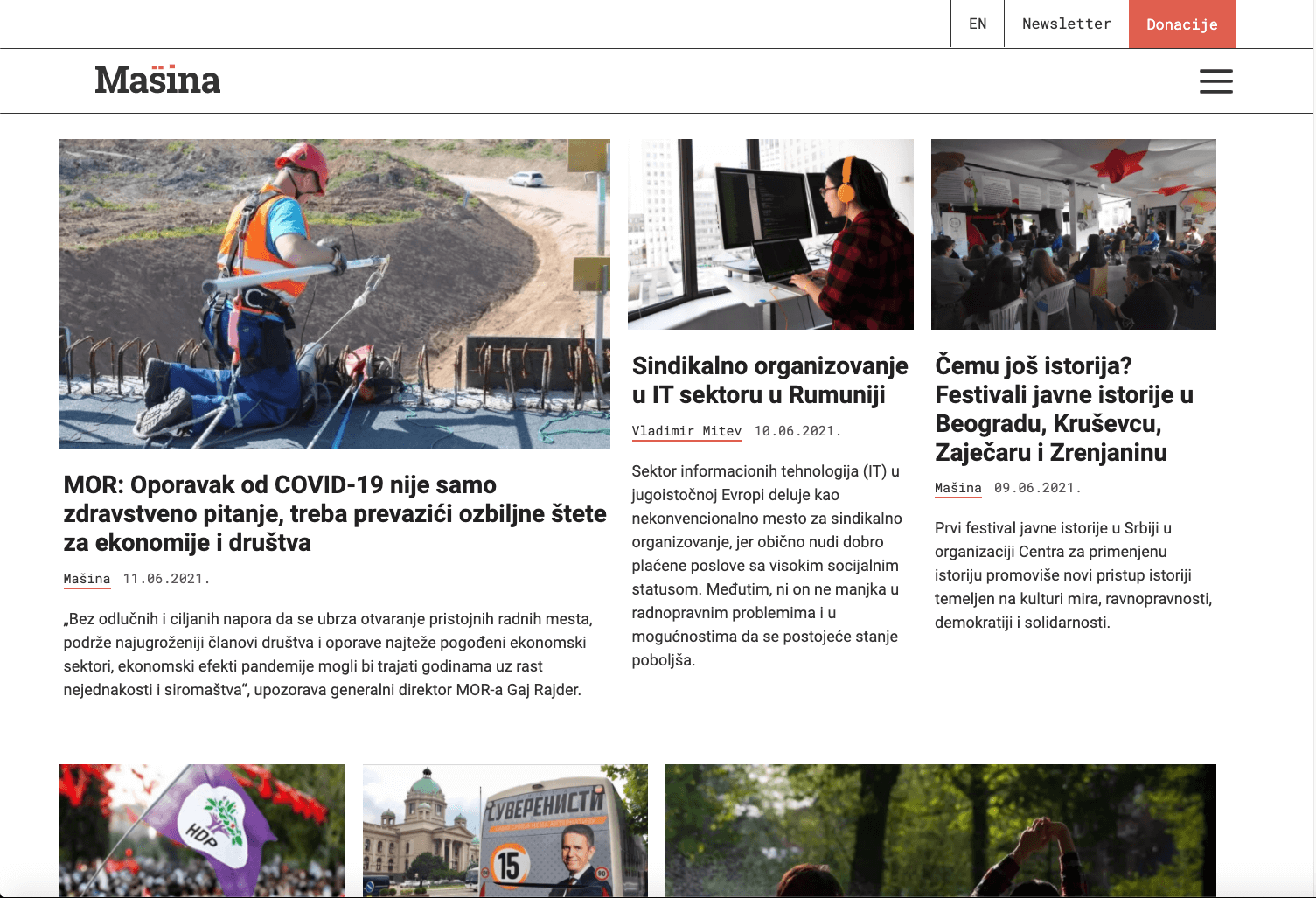 Naš veb sajt masina.rs pokrenut je tokom prve godine realizacije projekta Kritička mašina i na njemu se nalaze svi tekstovi koje su učesnici pisali od početka seminara, kao i tekstovi spoljnih saradnika i izbor tekstova iz drugih medija. Kolektiv okupljen oko projekta – koji se sastoji od učesnika iz obe generacije polaznika (2014; 2016) koji su sada organizovani kao urednički kolektiv Masina.rs.