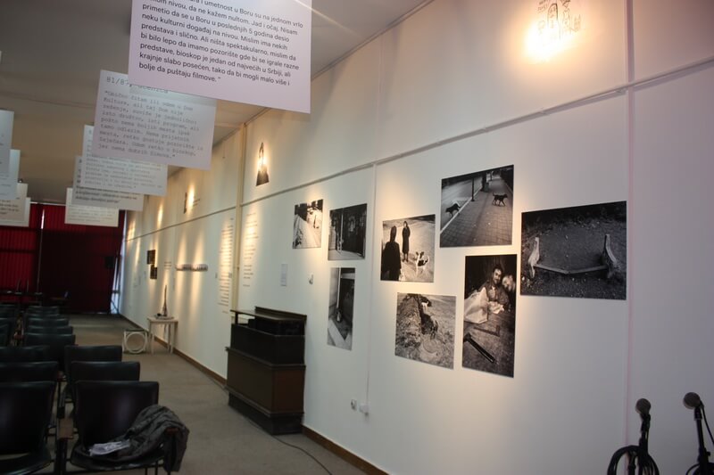 Pomenuta studija nam je poslužila kao početna tačka u promišljanju savremene kulturne i umetničke scene u Boru. Uzimajući u obzir da se prvi put susrećemo sa kontekstom Bora, želeli smo da – koliko nam je to vremensko-prostorni okvir projekta dozvoljavao – mapiramo i promislimo ključna pitanja kulture, kulturne politike, ali i položaja lokalne savremene umetničke prakse koja egzistira u datom kulturološkom kontekstu. U tom smislu smo sproveli i seriju video-intervjua u kojima smo, direktno, pitali same protagoniste kulturne i umetničke scene Bora o stanju u kulturi u Boru danas. Pored pomenutih intervjua sa radnicima i radnicama u sektoru kulture, umetnicima i umetnicama koji učestvuju na izložbi, organizovali smo i radionice sa borskim srednjoškolcima, u kojima smo pokušali da izvedemo svojevrsni re-enactment intervjua iz 1978. godine, prilagođenih savremenom trenutku. Tom prilikom smo ih pozvali da i oni učestvuju u njemu, tako što će napraviti mini-intervjue sa svojim roditeljima, komšijama, prijateljima na pitanja: „Kako provodite slobodno vreme?“ i „Šta mislite o kulturi i umetnosti u Boru?“